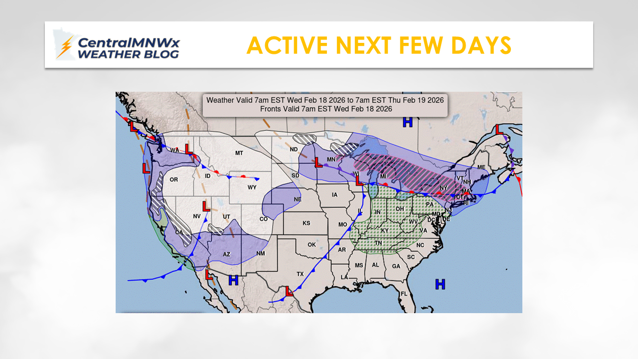 For us here in Central Minnesota, we do have a bit of an active weather pattern as we head into the second half of this week, beginning on Wednesday. An area of low pressure is going to build up on the border of North Dakota and South Dakota. Which will make way for some mixed precipitation.