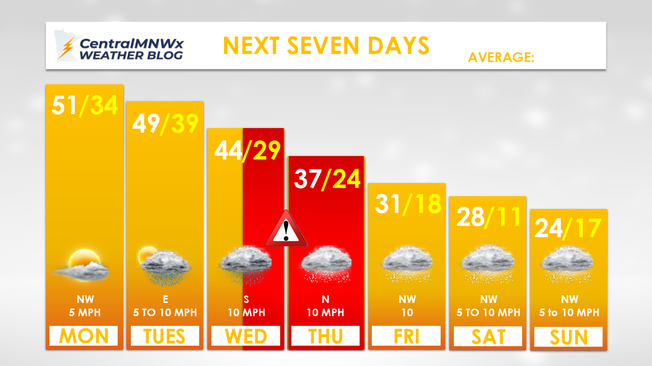 What we know right now, is late Wednesday afternoon into the overnight hours, will bring mostly rain to start. As the system moves north of Central Minnesota, it will transition to mostly snow for folks up north.
